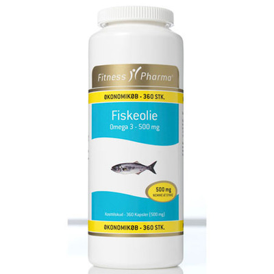 Fitness Pharma Fiskeolje 500 mg er et kosttilskudd med naturlig fiskeolje utvunnet fra sardiner og ansjos. Hver kapsel inneholder fiskeolje med omega-3-fettsyrene EPA og DHA. DHA og EPA bidrar blant annet til å opprettholde et normalt blodtrykk. Oljen er tilsatt en naturlig antioksidant for å beskytte mot harskning og sikre god holdbarhet. Kapslene er utformet for enkelt inntak.