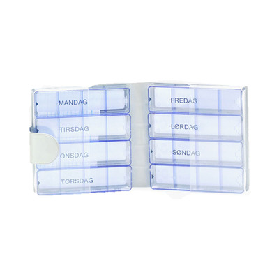 Medimax uke doseringseske med store rom og fast rominndeling er designet til personer som skal ta store eller mange tabletter daglig. Doseringsesken er også ideell til personer som har vanskeligheter ved å håndtere mindre gjenstander, eller har nedsatt syn. Lokkene er markert med ukens 7 ukedagr, og på siden er det markert med morgen, middag, kveld og natt. Eskene har fast rominndeling og skrivefelt på baksiden.