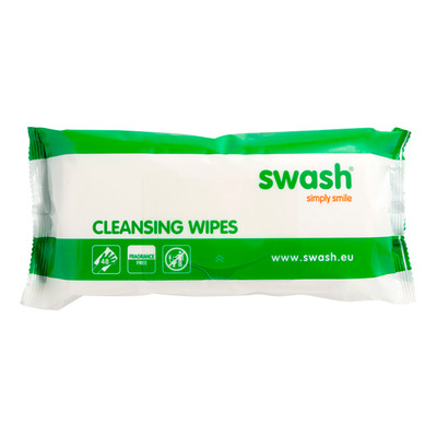 Cleansing Wipes uten duft fra Swash er fuktige engangsvaskeservietter som er milde og gode til hyppig vask hos personer med inkontinens. Serviettene er skånsomme og gir en grundig vask av intimsonen.