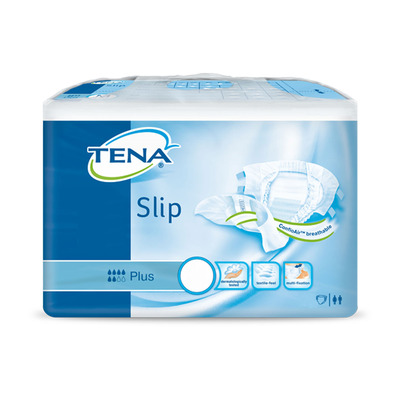 TENA Slip Plus ProSkin er utviklet for å gi maksimal beskyttelse og komfort for personer med moderat til alvorlig inkontinens. Disse bleiene har en hurtigabsorberende kjerne som effektivt holder på fuktigheten og holder huden tørr og sunn. Det myke, tekstillignende materialet føles behagelig mot huden, og de justerbare borrelåslukningene sørger for en sikker og personlig tilpasset passform. Med trippel beskyttelse mot lekkasjer, lukt og fuktighet kan du føle deg trygg hele dagen. TENA Slip Plus ProSkin er lett å skifte og er ideell for både dag- og nattbruk.
