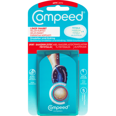 Compeed Gnagsårplaster (Sportsdesign) er velegnet til større gnagsår på fotsålene. Gnagsårprodukter fra Compeed påføres gnagsåret og virker som et ekstra hudlag som lindrer trykk og smerter samtidig som det beskytter mot vann, skitt og bakterier. Compeed virker uansett hvilket stadie av gnagsåret er i, men jo tidligere det påføres, jo fortere vil det begynne å hele.