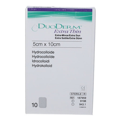 DuoDERM® Ekstra Tynn sårbandasje er en tynn og smidig hydrokolloid bandasje, som brukes til lett væskende sår. Den er vann- og bakterietett, og designet for å redusere risikoen for ytterligere nedbrytning av huden pga. friksjon, ved å forhindre kontakt med klær/sengetøy. Bandasjen er transparent, og enkel å klippe for å få ønsket størrelse og form.