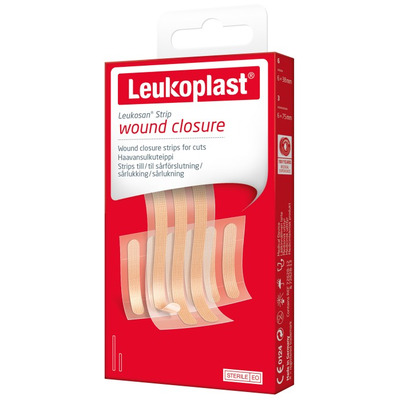 Leukoplast Leukosan Strip inneholder 9 stk. smale plastre designet spesielt til lukking av for eksempel rifter og små snittsår innenfor de første 6 timer. Plastrene er sterile og utstyrt med en hudvennlig akrylklebemasse som hjelper med å lukke små sår og rifter sikkert og smertefritt. Stripsene er lette å fjerne igjen etter bruk.