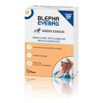 Blepha Eyebag Eye Mask er en gjenbrukbar, varmende øyemaske som er utviklet for å lindre symptomer på tørre øyne, inkludert dysfunksjon i meibomske kjertler (MGD), blefaritt og styes. Masken varmes opp i mikrobølgeovn og bidrar til å myke opp og frigjøre de naturlige oljene i øyelokkskjertlene, slik at tårefilmen blir av god kvalitet. Den kan også redusere muskelspenninger og ha en avslappende effekt på trette øyne.