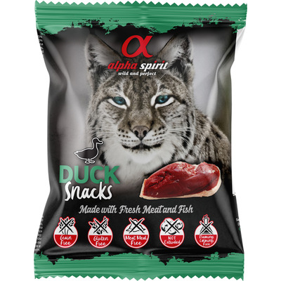AlphaSpirit andegodbiter er spesielt godt egnet som belønning til katten din. Godbitene er laget av naturlige ingredienser og har en deilig andesmak. Godbitene er fri for korn, gluten, kjøttmel og kunstige farge- og smaksstoffer.