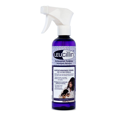 Leucillin Antiseptisk Spray er en skånsom og effektiv løsning for hudpleie og hygiene hos dyr. Den er utviklet for å bekjempe bakterier, virus og sopp, samtidig som hudens naturlige balanse opprettholdes. Sprayen er pH-nøytral og fri for steroider, antibiotika og alkohol, noe som gjør den egnet for følsomme områder. Leucillin kan brukes til både små og store sår, hudirritasjoner, insektbitt og andre hudproblemer.