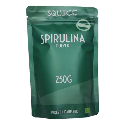 Squice Organic Spirulina Powder er laget av tørket spirulina, en blågrønn mikroalge som er naturlig rik på klorofyll og vegetabilsk protein. Pulveret er økologisk, vegansk og uten tilsetningsstoffer. Spirulina brukes ofte som et tilskudd i et variert kosthold og har en karakteristisk grønn farge og en lett salt smak. Produktet er pakket i Danmark og egner seg til å blande i smoothies, juice eller yoghurt. Pulveret er 100 % rent og består utelukkende av spirulina.