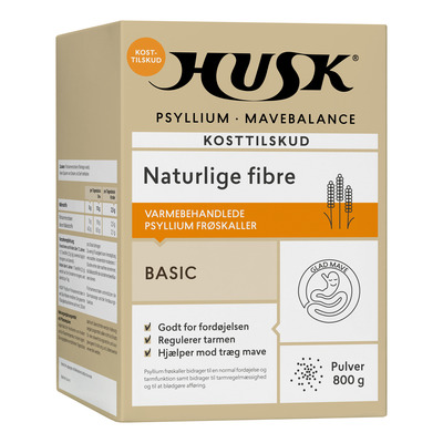 HUSK Psyllium Stomach Balance er en naturlig fiberkilde med psylliumfrøskall - ny stor pakke på 800 g.