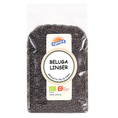 Økologiske Beluga-linser smaker fantastisk og har fått navnet sitt etter den svarte og ettertraktede Beluga-kaviaren. Den vakre svarte fargen og den delikate smaken gjør dem til virkelig luksuriøse linser, som også har et høyt proteininnhold. Fargen på linsene endres til militærgrønn når de kokes. Linsene smaker veldig godt, spesielt når de er godt krydret. De absorberer mest smak hvis de krydres eller marineres mens de er varme. Bruk linsene i kalde og varme salater, supper og som pynt.