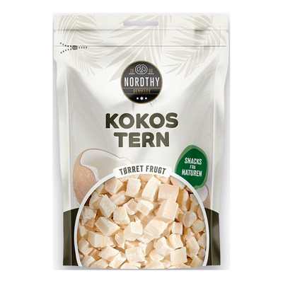 Nordthy Kokosterninger er små, firkantede biter av ren kokosnøtt med en herlig sødme og myk konsistens. De er perfekte som et raskt mellommåltid eller som et supplement til frokost og bakverk. Med sin autentiske kokosnøttsmak passer de godt i en hjemmelaget trailmix eller som dryss på yoghurt og smoothiebowls. Takket være sin allsidighet kan de brukes i både søte og salte retter.
