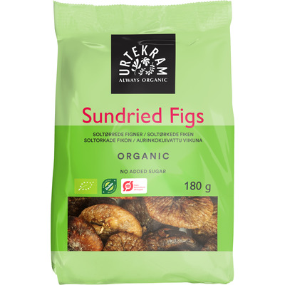 Urtekram Økologiske soltørkede fiken er deilige, myke og naturlig søte frukter som passer perfekt som snacks eller som ingrediens i både det søte og det salte kjøkken. Fikenene er soltørket uten konserveringsmidler og er derfor helt naturlige i både smak og utseende.