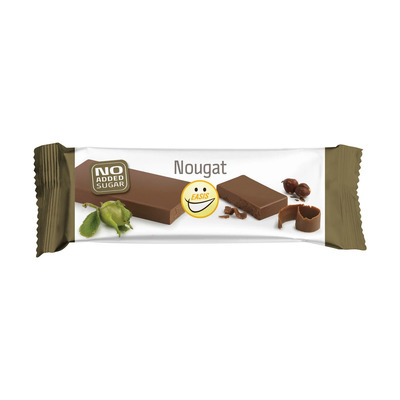 Nougat med minimum 30 % hasselnøtter. Inneholder søtningsmidler. Ikke tilsatt sukker, men med et naturlig sukkerinnhold.
