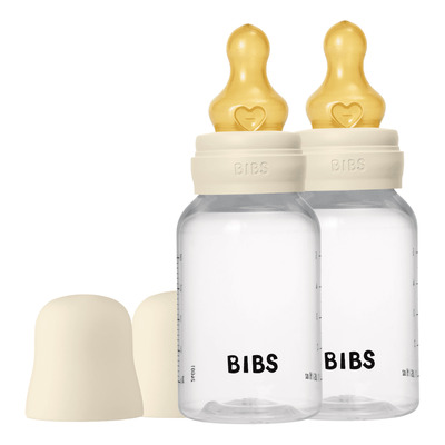 BIBS Baby Bottle Round Latex 150 ml er en pakke med 2 BPA-frie tåteflasker