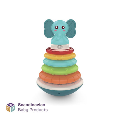 Med dette Elefant Stabletårnet fra Scandinavian Baby Products får du og barnet mange hyggelige timers lek. Stabletårnet består av fem ringer i forskjellige skjønne farger og størrelser, som raskt fanger barnets oppmerksomhet. Tårnets bunn kan vippe, så de små bevegelser gjør det morsomt og utfordrende for barnet å stable ringene.