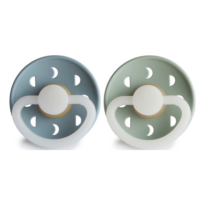 FRIGG Moon Phase Round Latex Stone Blue Night/Sage Night er en 2-pakning med smarte nattsutter som kan lyse i mørket.