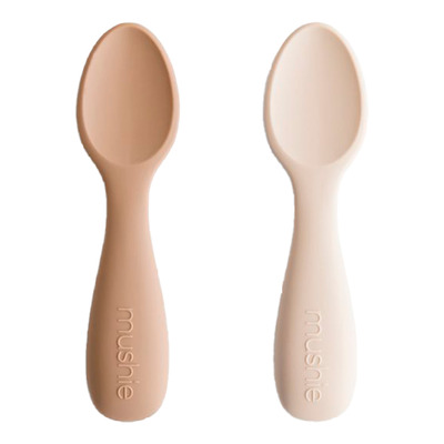 Mushie Toddler Starter Spoons Silicone - Natural/Shifting Sand er myke og trygge skjeer for barn fra 12 måneder