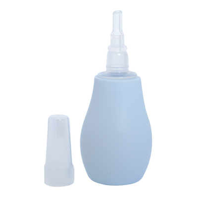 Trykk pumpen FØR den føres inn i nesen. Før forsiktig den myke spissen inn i barnets nese, og sug heretter. Suppler eventuelt med saltvannsdråper som løsner fast slim.