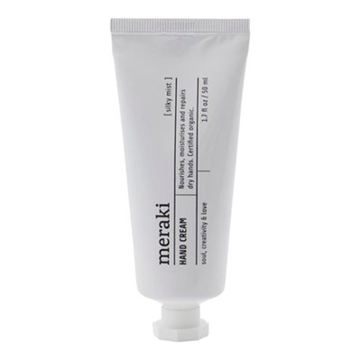 Håndkremen Silky Mist fra Meraki har en luksuriøs formel designet spesielt for å gi myke, velpleide hender – når som helst. Den lille tuben er veldig praktisk å ta med i håndvesken. Kremen inneholder økologisk aloe vera, jojobaolje og kakaosmør som virker fuktighetsgivende i dybden.