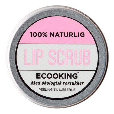 Ecooking Lip Scrub er en peelende sukkerscrub til leppene fremstilt av 100% naturlige ingredienser. Den inneholder blant annet økologisk rørsukker, E-vitamin, som virker oppstrammende, samt abrikoskerneolje og sheasmør, som har en effektivt heler og mykgjør, så du kan vinke farvel til tørre og sprukne lepper.