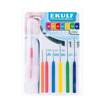 Ekulf PH Professional Mixed er en pakke med 7 tannbørster til mellomrom mellom tennene i forskjellige størrelser.