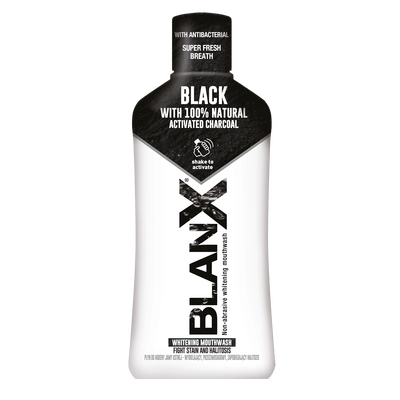 Ønsker du å fjerne plakk samtidig med at du får hvitere og mer skinnende tenner? Munnskyllen fra BlanX fungerer som enhver annen type munnskyll som du kan bruke både morgen og kveld, men den er laget på aktivt kull der kullstoffpartiklene fjerner plakk og andre urenheter som kan forårsake misfarging. Munnskyllen gjenoppretter altså den naturlige hvitheten til tennene dine, og inneholder arktisk lav, mykt silikat og fluorsalter som bidrar til en dybderensende og blekende virkning.