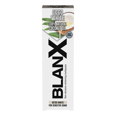 BlanX Coco White Tannkrem er en sammensmelting av naturens reneste ingredienser for å sikre et sunt og hvitt smil. Den blekende tannkremen er beriket med 100 % naturlig kokosnøttolje, som er kjent for sine plakkfjernende og antitoksiske egenskaper. Tannkremen sikrer varig tannbleking uten at det går ut over munnhelsen. Den er spesielt egnet for følsomt tannkjøtt og virker betennelsesdempende og beroligende.