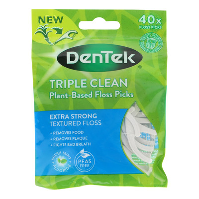 DenTek ECO Triple Clean Flosser fjerner effektivt plakk og matrester som sitter fast i mellomrommene mellom tennene