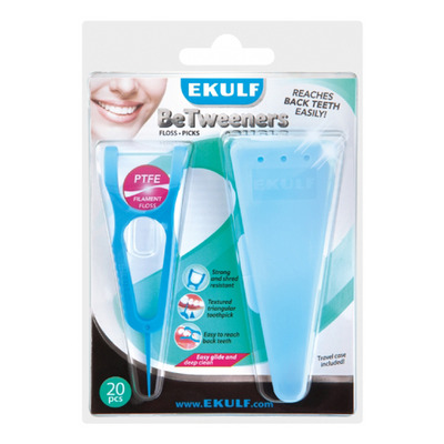 Ekulf BeTweeners er en kombinert tannspirker og tanntrådsbøyle med en spesiell PTFE tråd som ikke flosser, og som rengjør skånsomt og forsiktig mellom tennene.