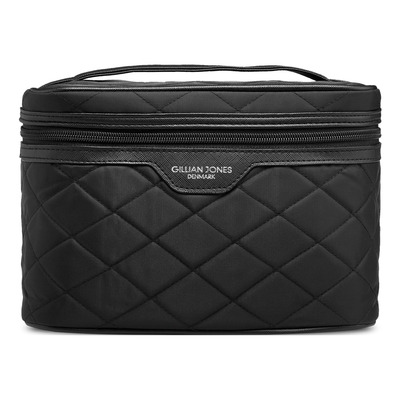 Gillian Jones Beauty Boks Quilt er en stor og romslig toalettmappe i et klassisk, stilrent og svart design. Vesken er designet med et stort rom med plass til alle produktene dine. Inne i vesken er det fire elastiske stropper der du kan feste produktene du ønsker å holde oppreist. I toalettveskens lokk er det et rom med glidelås der du kan plassere mindre og skjøre gjenstander.