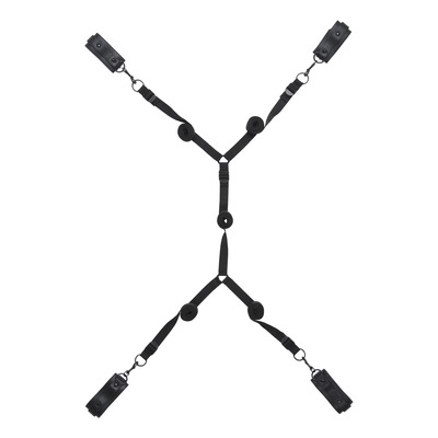 Obaie Imitation Leather Under The Bed Tie Set er et praktisk bondage-sett som enkelt monteres under sengen og gjør det mulig å sikre både håndledd og ankler. De justerbare stroppene plasseres under madrassen slik at håndjernene stikker ut i hvert hjørne. Dette gjør det mulig å fiksere både i liggende og liggende stilling.