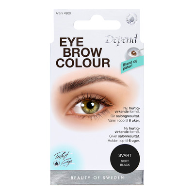 Depend øyenbrynsfarge inneholder alt du trenger for en perfekt øyenbrynsfarge. Den er enkel og trygg å bruke med et fargeresultat som varer opptil 6 uker. Fargeresultatet er permanent og vanntett, noe som gjør at du ser fresh ut om morgenen, når du driver med sport, soler deg, bader eller utfører andre aktiviteter der det ikke er optimalt å bruke sminke.
